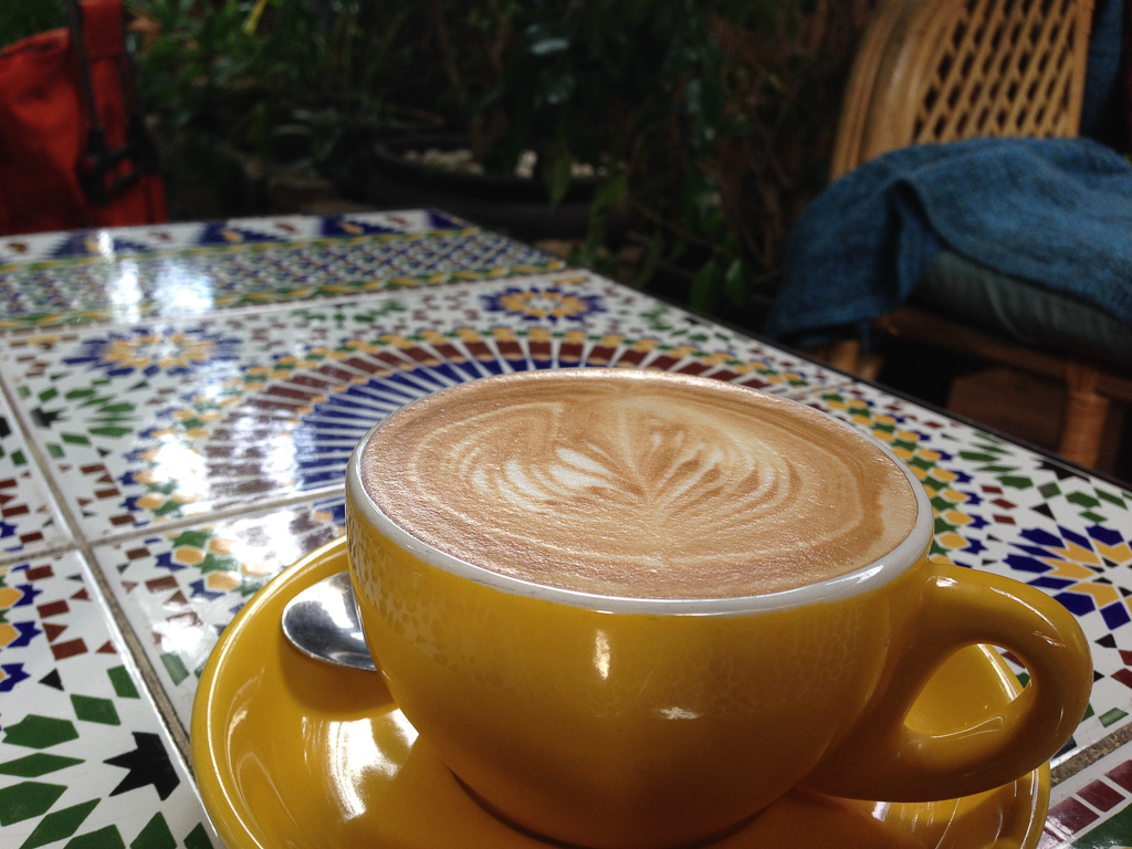 「どっちも!」と言われたのでいつも通りフラットホワイトを注文。