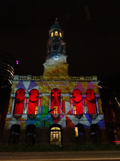 ついでにタウンホールのライトアップも。